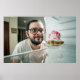 Witziger Mann, der Kühlschrank sieht Poster