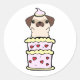 Witziger Mops springt aus einem Kuchen Runder Aufkleber