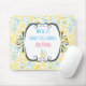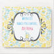 Ein Mousepad mit einem lustigen humorvollen Zitat. Wenn das Leben dir Zitronen gibt, gib Wodka hinzu. Das Sprichwort ist Set in einem extravaganten skurrilen Rahmen. Der Hintergrund ist ein altes und niedliches Muster, das aus gelben Zitronen und pastellblauen Blumen in einem handgezeichneten illustrierten Stil besteht.