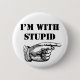 Funny Button mit Text: "Ich bin mit Dummheit" und Zeiger Hand