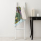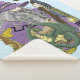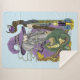 Ein Zauberer, lila, der eine lila Kristallkugel hält. Ein kleiner grüner Drache, keltische Knoten, Kerze und ein Rand des Herbstes hinterlassen alles in einem hellblauen Hintergrund