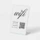 Benutzerdefiniertes Wifi Network QR Code White Pedestal Sign. Erstellen Sie ein benutzerfreundliches Dokument mit Ihren Netzwerk- und Passwort-Informationen, ideal für verschiedene Umgebungen wie Hotels, Büros, Firmen, Zuhause, Verleih, Gästezimmer oder jeden Ort, an dem die Details des Internetzugangs weitergegeben werden müssen. Wählen Sie die Hintergrundfarbe, um die Markendarstellung Ihres Unternehmens oder Ihres Unternehmens für eine zusammenhängende Präsentation zu optimieren.