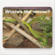 Mousepad mit Bild einer großen grünen Schlange und "wo ist die Maus?" Titel