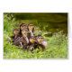 Eine köstliche Brut von Stockenten-Entenlingen schaut von ihrem weichen Grasnagel neben einem ruhigen Teich aus.