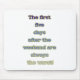 Ein lustiger Text, der jedem ein Lächeln auf das Gesicht bringt. Der Text sagt: Die ersten fünf Tage nach dem Wochenende sind immer die schlechtesten!