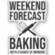Wochenendprognose - Backen (mit der Möglichkeit zu trinken). Dieses lustige Zitat Backzubehör ist ein tolles Geschenk für einen Mann oder eine Frau, der in der Küche Lieben zu backen. Auch perfekt für Bäcker oder Bäcker. Wenn Sie ein Zuhause-Bäcker sind, Liebe der kulinarischen Künste und Liebe, um köstliches Brot, Kekse, Muffins, Kuchen oder Kuchen im Ofen zu bereiten, dann ist dieses humorvolle Design für Sie.