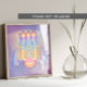 Dieses aufwändige Design stellt eine stilisierte Struktur mit Türmen und Kreuzen dar, die ein Gefühl von Spiritualität und Abstraktion weckt und gleichzeitig harmonische Farben, die Tiefe und Kreativität nahe legen, miteinander verbindet.
