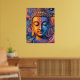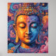 Das Kunstwerk zeigt ein nahes Buddha-Portrait, inspiriere ein Gefühl von Spiritualität oder Mystik. Psychedelisches Portrayal gibt ihm eine verträumte Atmosphäre!