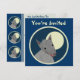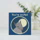 Kundenspezifische doppelseitige Einladungskarten. Front hat kundengerechtes "Sie werden eingeladen". Rückseite hat Einladungsinformationen--tragen Sie Ihren Ereignistitel, Datum, Zeit, Standort und eine persönliche Mitteilung ein. "Tapezieren Sie Ausschnitt" Art-Pelzwolf gegen einen Vollmond, innerhalb eines angrenzenden Kreises. Spaßtierentwurf.