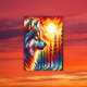 Wolf Gesicht mit Sonne & Wald | Fensteraufkleber