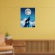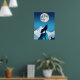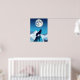 Poster in einer schwarzen Silhouette eines Wolfs, heulend auf einem großen Vollmond, stehend auf einem Berggipfel mit eisbedeckten Bergen im Hintergrund