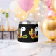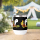 Un loup hurle à la pleine lune avec des feuilles et des glands d'automne sur fond de noir