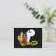 Ein Wolf heult auf Vollmond mit Herbstblättern und Eicheln vor schwarzem Hintergrund