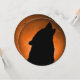 Wolf oder Werwolf heulen über einem hellen orangefarbenen Mond.