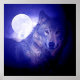 Wolf & Moon Square Poster Print Blue Night Wolfs