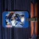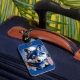Beautiful Wolf with deep yellow eyes, with Native American Dreamcatcters, in a Wild Blue Mountains Landscape and Full Moon. Original Vector Round Logo Design isolated on white Copyright BluedarkArt TheChameleonArt.