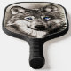 Pickleball Paddel mit Bild eines Wolfs mit blauen Augen.