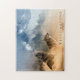 Dieses Spielpuzzlespiel wird mit einem Fotodruck der wilden Wölfe in einer mystischen Einstellung zusammen mit Text von Yellowstone gezeigt.