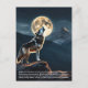 Wolfsmymbolismus Postkarte: Wölfe haben keine Vorliebe für Vollmond gegenüber anderen und heulen nachts mehr, einfach weil sie nächtlich sind. Wölfe schlafen den Großteil des Tages und bleibe den Großteil der Nacht durch. Die Wolfsmsymbolik umfasst Wildheit, Verspieltheit, List, Mut, Weisheit, Stärke, Schutz, Loyalität, Ausdauer und Intuitivität.