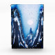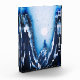 Wolf und Vollmond in diesem blau gefärbten felsigen Landschaftsfoto-Block-Kunstwerk von Künstler Jason Girard.