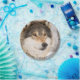Tiere, Wildtiere, Wildtiere, Lumberjack zum Thema Geburtstag. Foto eines Wolfskopfes. Ein freundlich aussehender Wolf mit einem Lächeln auf dem Gesicht. Es ist Winter mit weißem, schneebedecktem Hintergrund. Ein Teller für die 5. Geburtstagsfeier eines Jungen. Mit dem Text: Happy Birthday (x2) Vorlage für den Namen des Kindes, schwarze Buchstaben. Geschwungener Text.