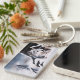 Un loup qui s'allonge dans la neige de l'hiver avec un château derrière le loup.