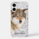 Thema Tier und Natur. Jagen Wolf auf Aussichtspunkt und Wachmann in einem Winterwald gewartet für seine Beute, oder vielleicht auf der Suche nach dir..? Ein schönes und stolzes Tier mit dickem Fell in braun, weiß und schwarz. Passen Sie einen Namen, schwarze Buchstaben, an und fügen Sie ihn hinzu.