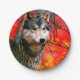 Wölfe, die durch Blätter in einem Wald gucken Pappteller