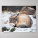 Ein Rudel Wölfe, die auf dem schneebedeckten Boden schlafen. Der Wolfsführer hat die Augen offen und schaut euch an. Foto aus Norwegen, Skandinavien