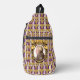 L'oeuvre originale de ZoeSPEAK sur ce Sling Bag présente un portrait du compositeur de musique classique Wolfgang Amadeus Mozart. Le portrait est un ensemble de profil dans un cadre doré ovale orné. Le cadre est accroché sur un papier peint violet arrière - plan avec des grappes dorées de raisins en rangs, et des rayures verticales blanches et lavandes.