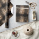 Wolf oder timberwolf, Gesichts-Foto überlagerten auf ein Foto eines Waldlandes mit den Strahlen des Sonnenscheins durch filternd für ein einzigartiges Verpackungspapier