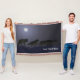 Eine kalte, mondbeleuchtete Winternacht; ein Wolfpack auf der Kugel. Ein digitales Bild von Wölfen, die nachts im Schnee jagen. Fügen Sie Ihren eigenen Text hinzu.