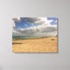 Der Himmel ist voller puffiger weißer Wolken am Hollywood Beach, Florida. In der Originalfotografie von ZoeSPEAK auf dieser Stretched Leinwand bieten die Wolken einen schönen Blick auf den goldenen Sand und den blauen, grünen Ozean, während ein paar Spaziergänge in der Brise vom Ufer zurück gehen. Der Blick geht bis zum fernen Horizont.