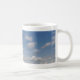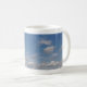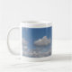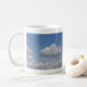 Ein Panoramablick auf flauschige weiße Wolken in einem blauen Himmel.