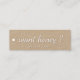 Ein auffälliges Imkerprodukt mit Honigbiene auf einem Kraft-Hintergrund. Auf der Rückseite ist Platz für Ihre Kontaktinformationen mit dem Text: "Unsere Bibliothek ist gefüllt mit Nektar- und Pollenbäumen und Wildblumen, die Honigbienen brauchen. Sie Liebe unsere Gärten - und du Liebe unseren Honig!" ...mit einer realistischen, lebensgroßen Honigbiene, die auf der Kartenrückseite von den links kraut. Diese hochwertigen Mini "Visitenkarten" haben eine Lochführung, sodass Sie sie als zusätzliche Honigwackelhalsmarken auf allen Ihren 3 bis 32 oz verwenden können, sodass sie sich besonders als Werbeartikel für den Markt des Bauern und als Geschenkartikel eignen. (Verwenden Sie einen Mini- oder Standardhandwerkstropp, um schnell ein Loch auf der links Seite jedes Kartonmarks zu platzieren und ein 1/8"-Band oder einen 1/8"-Knopf durch das Loch zu ziehen, um es mit einem Knoten oder Bogen an den Hals des Honigglases anzubringen.)