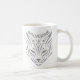 Eine klassische Tasse, die eine künstlerische Illustration des Wolfskopfes und des Sprichworts "WOLVERINE" enthält. Obwohl das Design komplett grau ist, können Sie die Wolffarbe und jedes Auge sowie den Textinhalt, die Farbe und den Schriftart im Bearbeiten-Tool ändern.