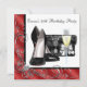 Elégant rouge et noir chaussures talon haut, sac à main et coupe de champagne invitation fête d'anniversaire. Cette belle invitation de fête d'anniversaire rouge pour les femmes est facilement customisée pour votre événement en choisissant simplement le bouton "Customisez-le !" pour commencer à ajouter vos détails d'événement, le style de police, la taille et la couleur de police et le libellé. Veuillez noter que tous les autocollants, cartes et modèles d'invitation que vous trouverez sur Zazzle sont des graphiques imprimés sans bijoux, arcs, surélevés, gaufrés, ni pièces ou pièces ajoutées.