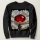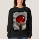 An imaginary flower design composed of a large red ruby surrounded by snow white petals covers this sweatshirt.