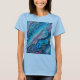 An abstract design in shades of turquoise and pink covers the front of this Basic Women's T-Shirt. This t-shirt comes in various sizes and colors, and will add color and interest to your style.