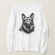 Stylish Black GSD Long Sleeve Shirt for Women. A detailed German Shepherd portrait makes this a perfect dog mom gift. Comfortable long sleeve white tee ideal for cooler days. Show your love for the GSD breed. Great dog owner apparel and canine graphic wear for her. Black German Shepherd gifts.