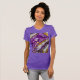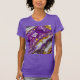 This women's slim-fit t-shirt is both stylish and comfortable. It comes in a variety of colors and sizes, with an abstract design in shades of purple, white, and gold. This unique t-shirt will add color and interest to your style!