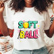 Hit a home run with this vibrant and fun Softball t-shirt! Featuring trendy bubble lettering in bright teal, pink, and yellow, this design is perfect for softball players, coaches, and dedicated sports moms. The playful graphics, including a classic softball, bat, and star accents, make it the ideal outfit for game days, practice, or school spirit events. Made from soft, breathable cotton, this women's tee combines athletic style with everyday comfort. Show off your love for the game in style!