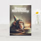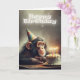 Ein Affe erstaunt sich über seinen Geburtstagskuchen mit Kerzen an.