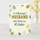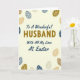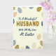 This card features a tender Easter message framed by rows of patterned oval shapes, like decorated eggs, that draw your eye inward 🌷. In the center, the word “HUSBAND” appears in a rich earthy gold, set in a sturdy sans‑serif style that feels steady and devoted. Above it, “To A Wonderful” sits in deep blue, written in a flowing style that softens the layout. Below, “With All My Love At Easter” continues in the same deep blue, curving gently as if leaning close in affection 🐰. The background is a creamy yellow that reads like early spring sunlight across the page. Around the edges, the ovals come in muted blues, warm browns, and soft creams, each filled with fine white swirls and lace-like patterns. Some ovals are spaced tightly while others have a little breathing room, creating a calm rhythm around the central words. The outer border shows these patterned ovals repeating in a neat ring against the pale yellow backdrop.