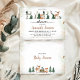 Die Einladung umfasst Waldtiere und Kiefern mit winterthematischem Design. Dieses Design eignet sich perfekt für eine winterlich geschlechtsneutrale Babydusche.