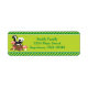 Dieses personalisierte Rücksendelabel weist einen grasgrünen Hintergrund mit diagonalen Streifen in zwei Grüntönen auf. Rot-weiße Pilze und ein Baumstumpf mit schwarz-weißem Stumpf befinden sich im links Vorlagenbereich, damit Sie Ihre Adresse oder einen anderen benutzerdefinierten Text hinzufügen können. Suchen Sie in meinem "Woodland Animals Party" Collection Clip art by Prettygrafik design nach koordinierenden Geburtstagsartikeln etsy.com/shop/Prettygrafikdesign