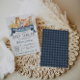 Blauer und grauer Waldland Lumberjack Babydusche Einladung mit Bär, Waschbär, Elch, Hirsch, Eule und Hase.