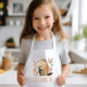 This kids' apron for animal lovers features a cute illustration of a groundhog surrounded by autumn foliage. Personalize it with your child's name in brown hand-printing style letters. Makes a great apron for boys or girls!