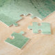 Beautiful earthy hues from Mother Nature in shades of green and brown tones in collage style illustration of a buck with huge antlers and a wild bird or sparrow hawk visiting on this bucks antler.