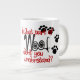 Jumbo Einige Tage, eine normale Tasse Joe wird einfach nicht funktionieren. Wenn du etwas mehr Koffein brauchst, dann hole dir die extra große Kaffeetasse von Zazzle. In sie passen 590 ml. Perfekt für Suppe, Müsli, Eis oder auch Chili! Diese riesige Tasse hat einen C-förmigen Griff für komfortables Trinken. Abmessungen: Höhe: 4,5" Durchmesser: 3,9" Fassungsvermögen: 20 Unzen Mikrowelle und Geschirrspülersicherheit Strong, Keramik construction erfüllt oder übertrifft die FDA-Anforderungen für Lebensmittel- und Getränkeservice Designer Tipp: Um den hochwertigen Druck zu gewährleisten, beachten Sie bitte, dass der anpassbare Designbereich dieses Produkts 4" hoch x 10,5" breit ist